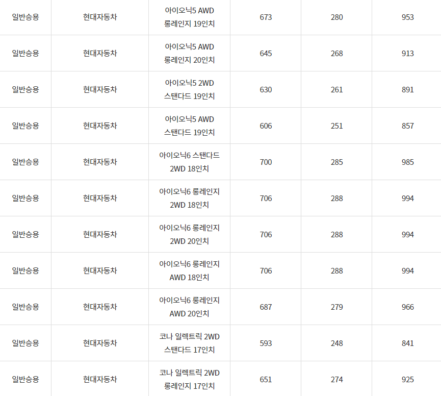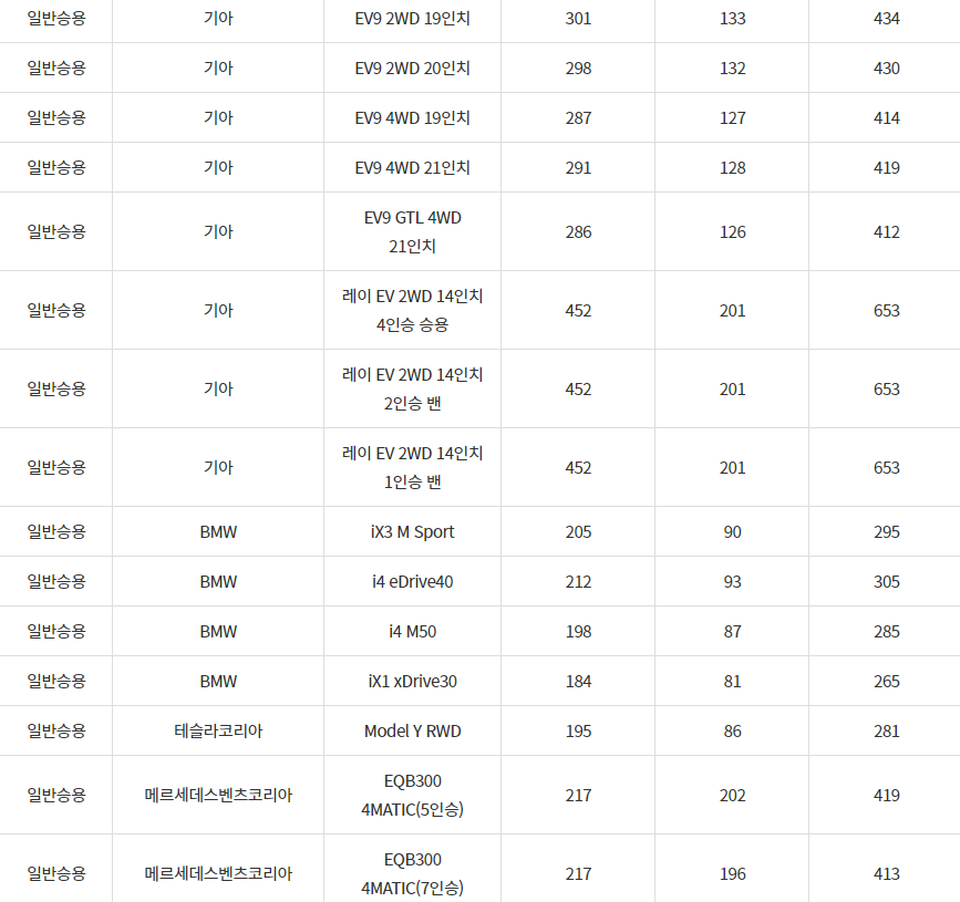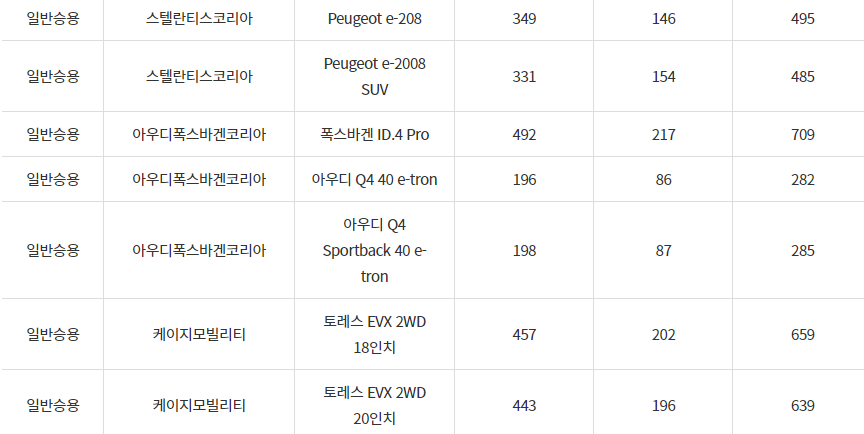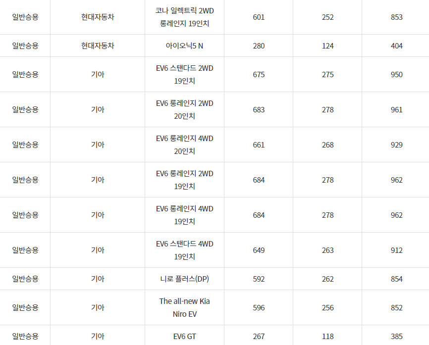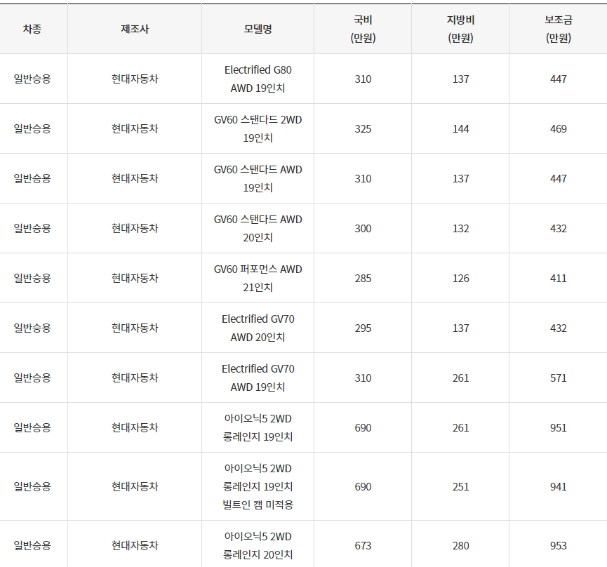 2024년 횡성군 전기차 차종별 보조금 (국비+지방비)