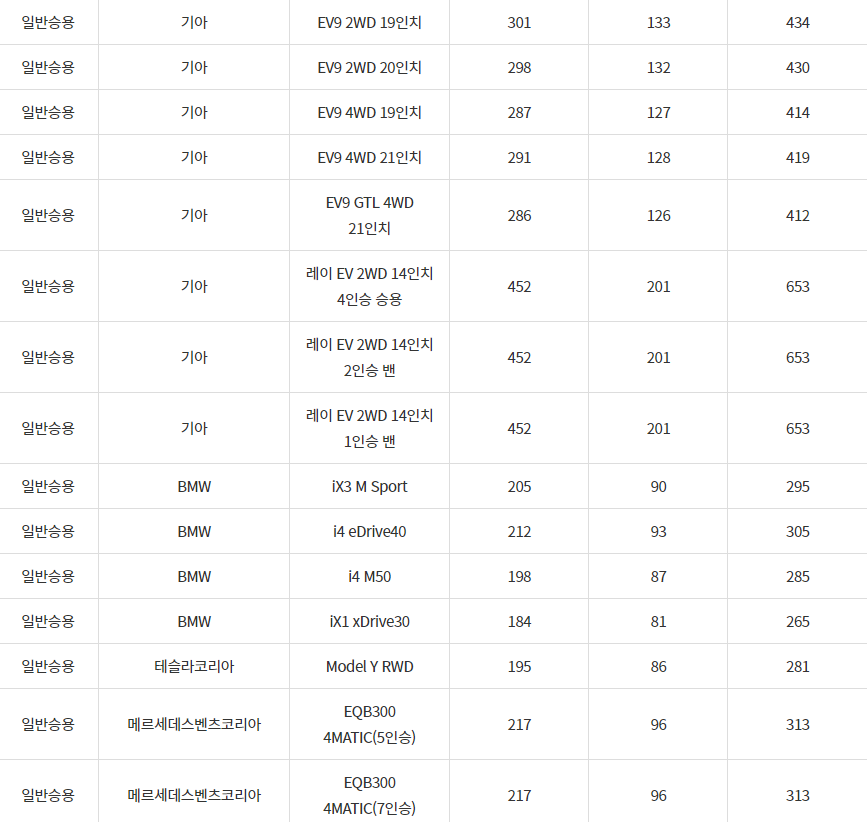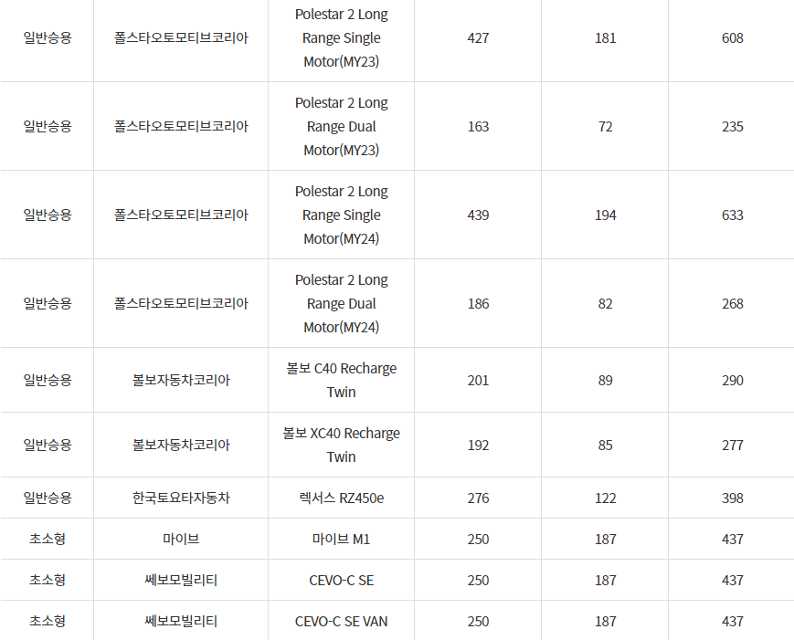 2024년 속초시 전기차 차종별 보조금 (국비+지방비)