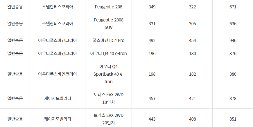 2024년 전기차 차종별 보조금, 경주시