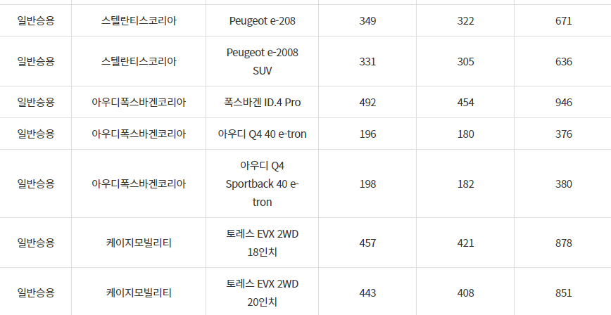 2024년 고령군 전기차 차종별 보조금 (국비+지방비)