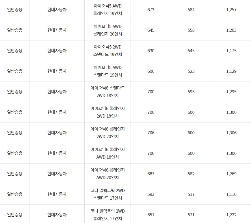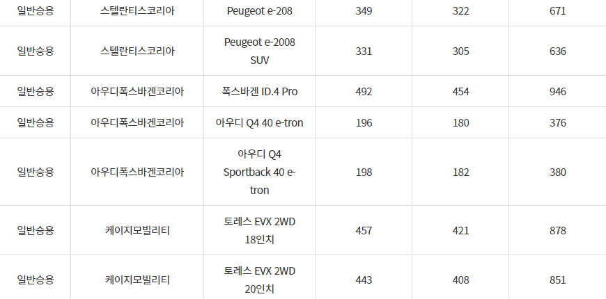 2024년 구미시 전기차 차종별 보조금 (국비+지방비)