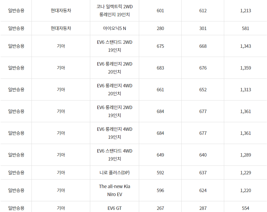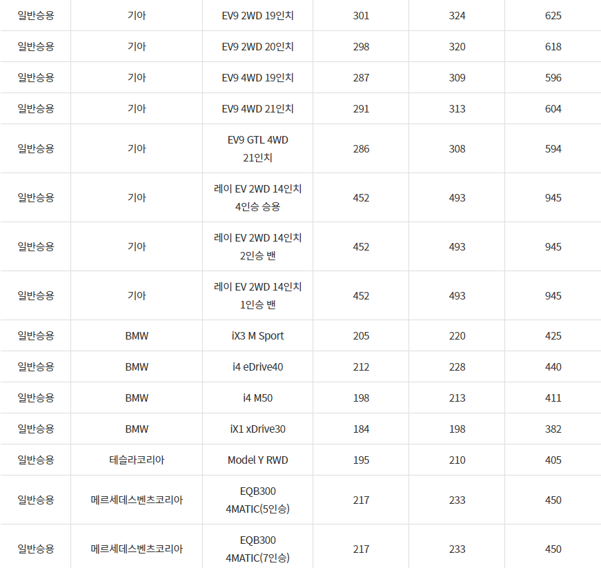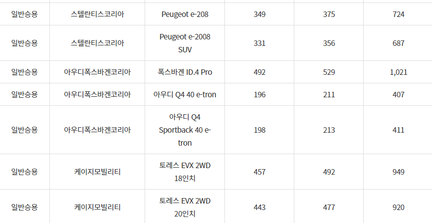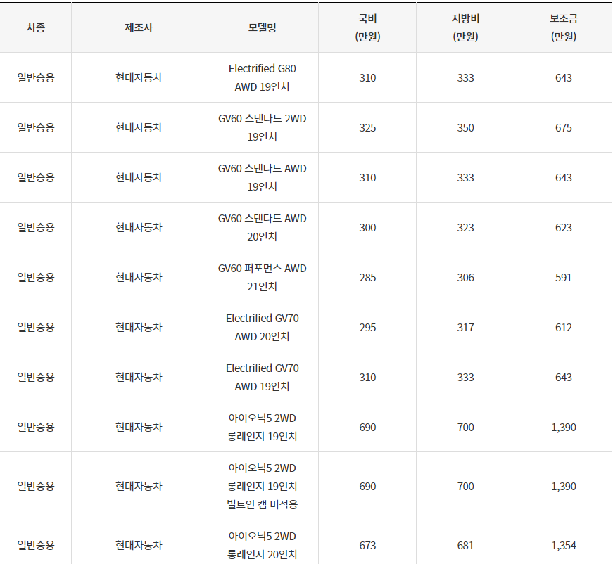2024년 군산시 전기차 차종별 보조금 (국비+지방비)