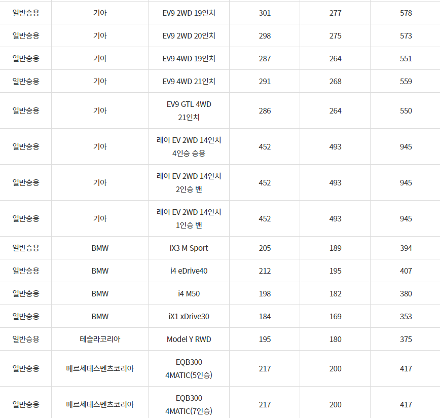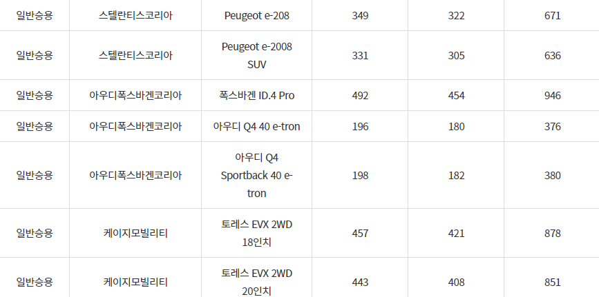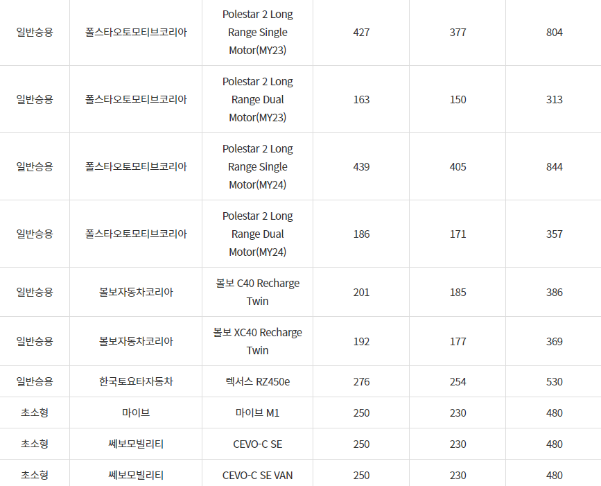 2024년 문경시 전기차 차종별 보조금 (국비+지방비)