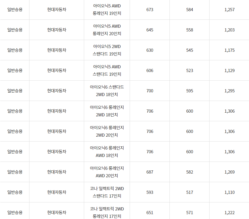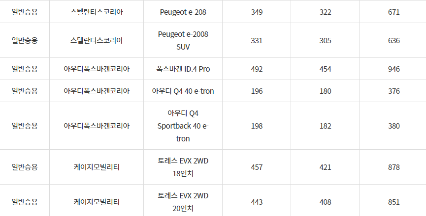 2024년 안동시 전기차 차종별 보조금 (국비+지방비)