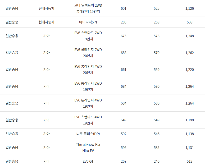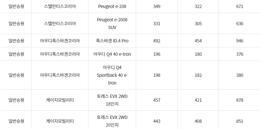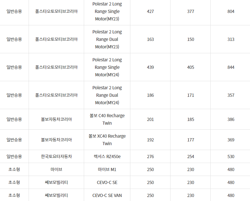 2024년 영덕군 전기차 차종별 보조금 (국비+지방비)