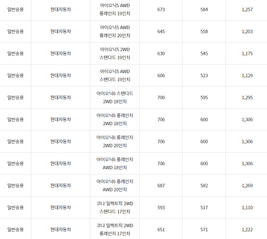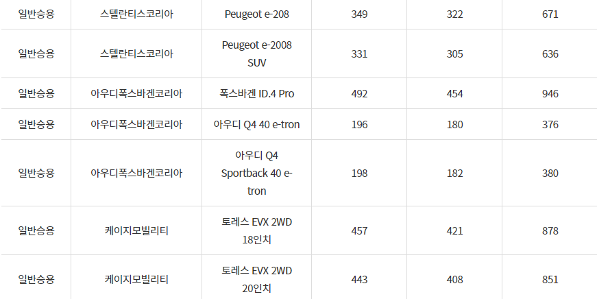2024년 전기차 차종별 보조금, 영양군