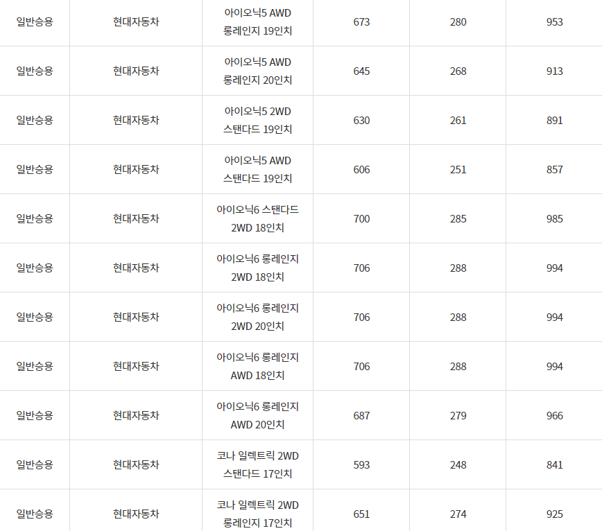 2024년 전기차 차종별 보조금, 정선군