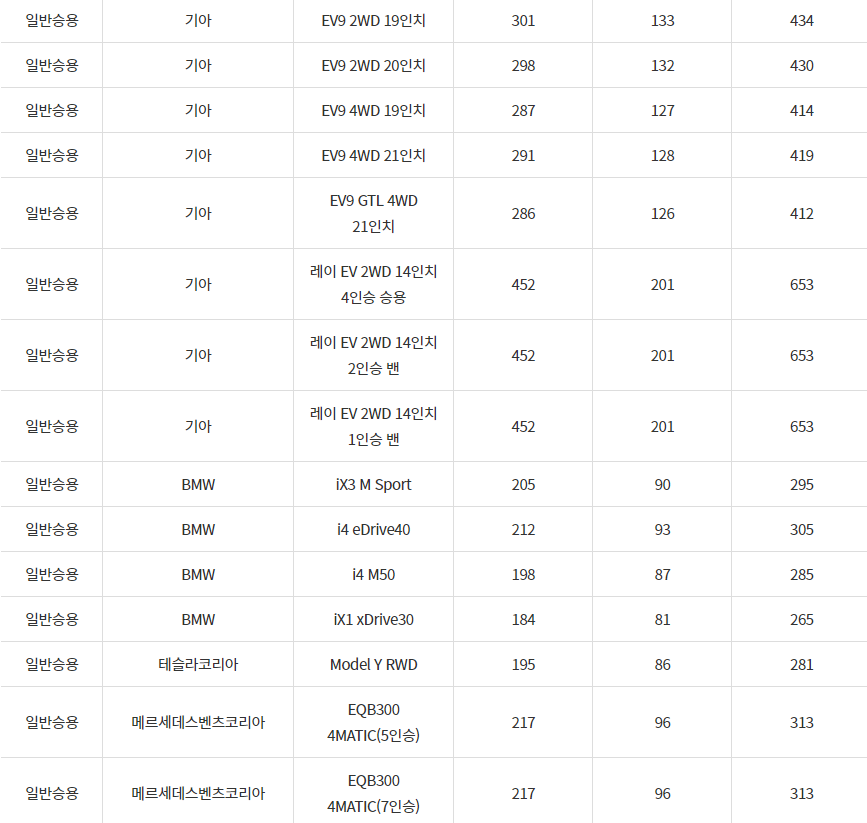 2024년 정선군 전기차 차종별 보조금 (국비+지방비)
