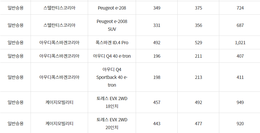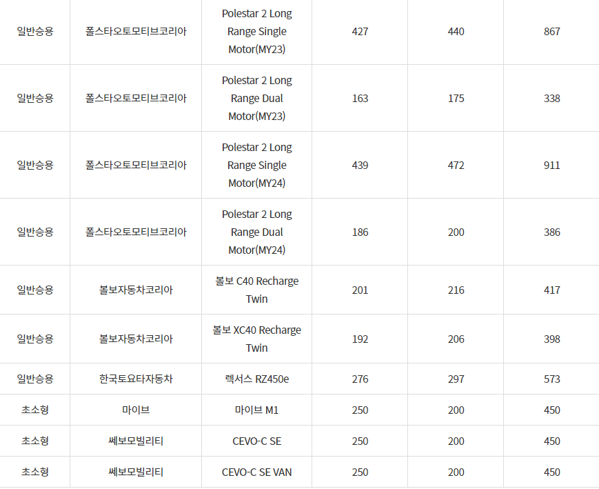 2024년 진안군 전기차 차종별 보조금 (국비+지방비)